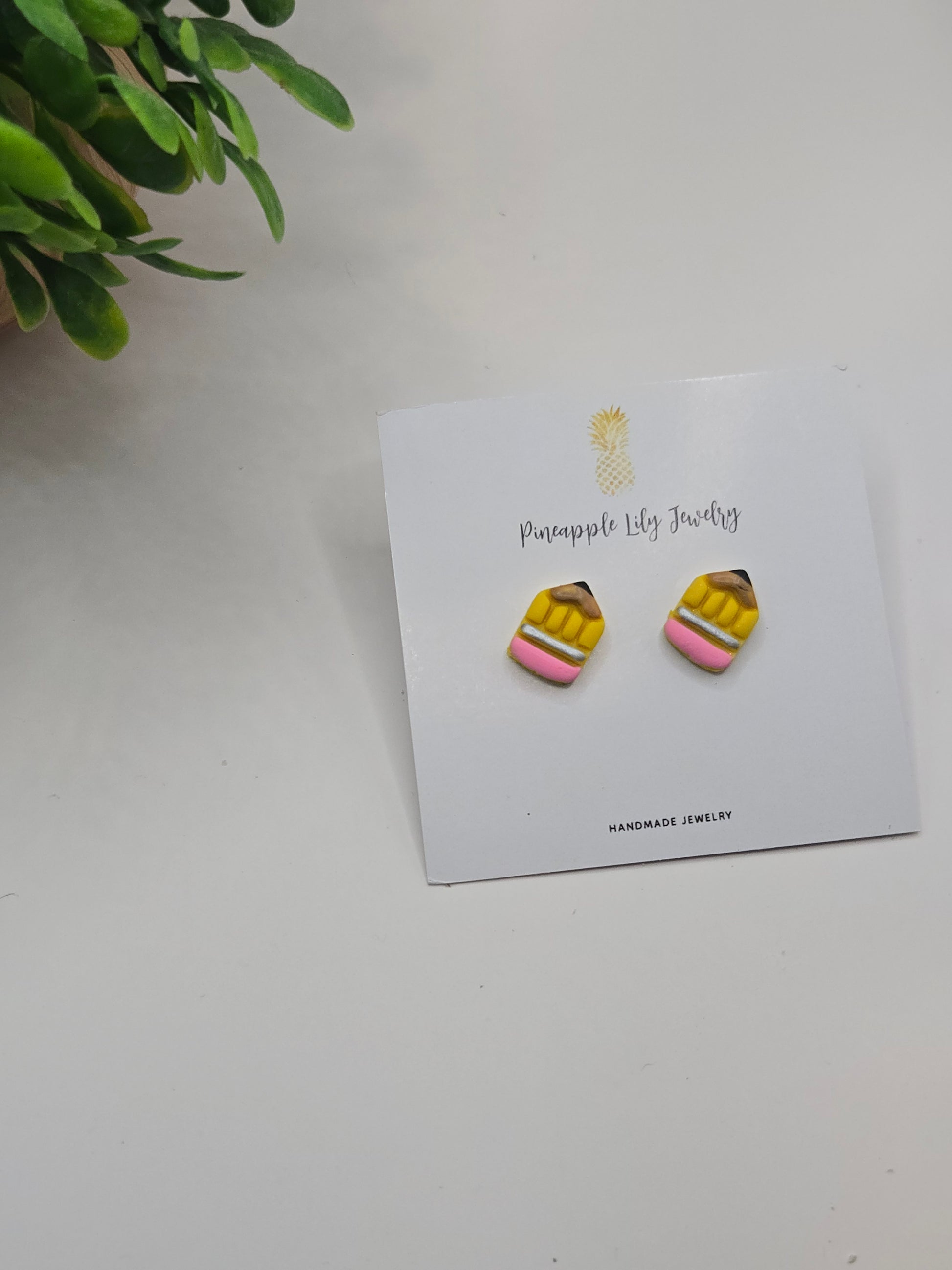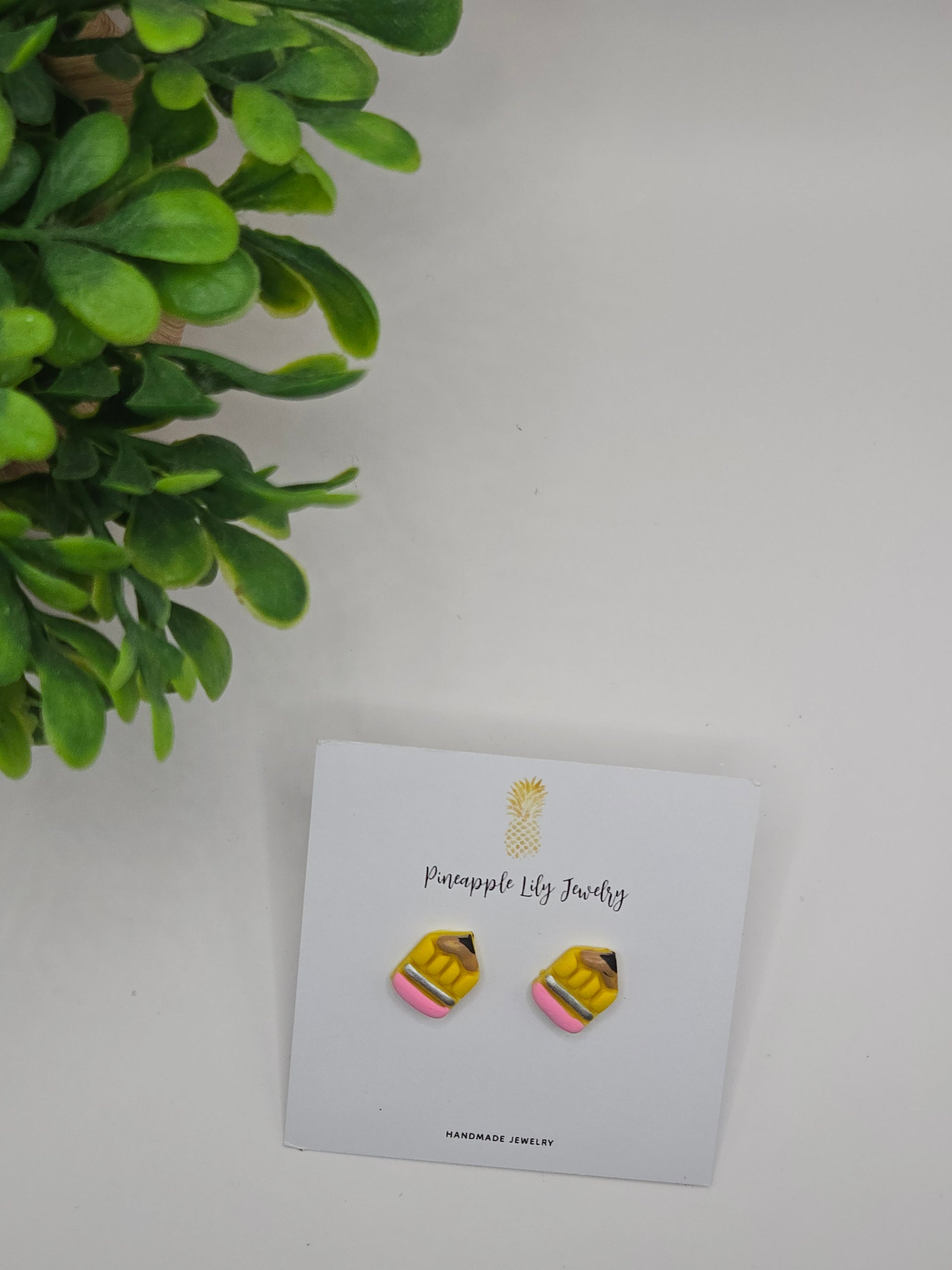Cute pencil studs handmade out of polymer clay. The design is handpainted with love.