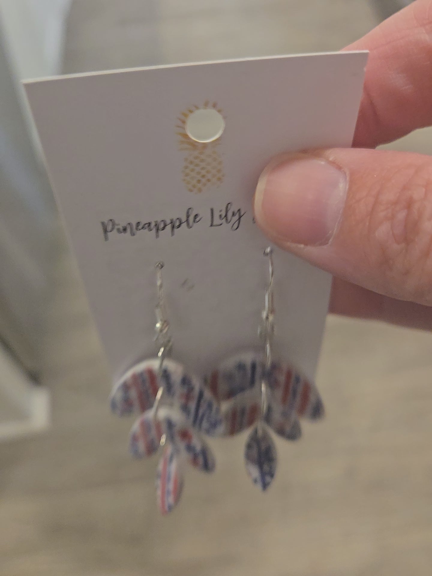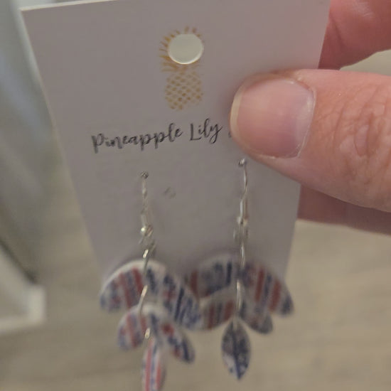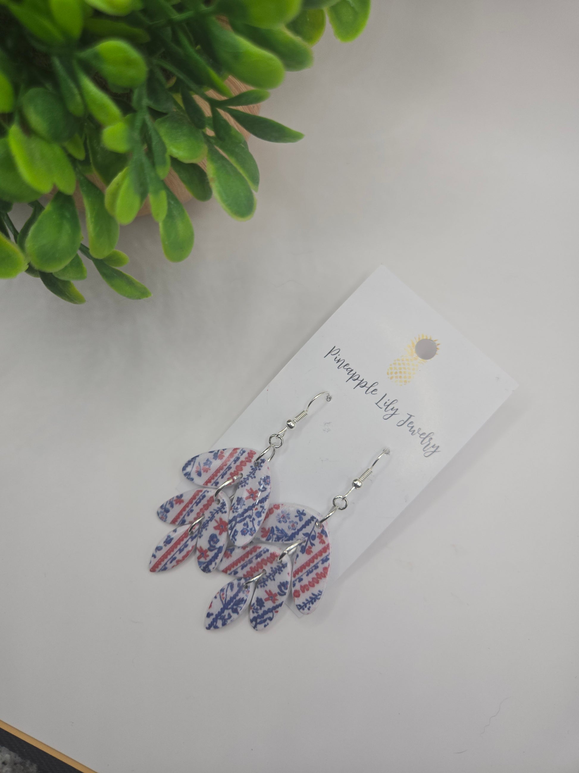 These are handcrafted from polymer clay with love and attention to all the details. Beautiful floral pattern in the red, white and blue color themed. Perfect for holidays and everyday wear. This style is lightweight and doesn't pull on your ears while wearing. Featuring stainless steel silver ear wire hooks and findings that are all hypoallergenic.