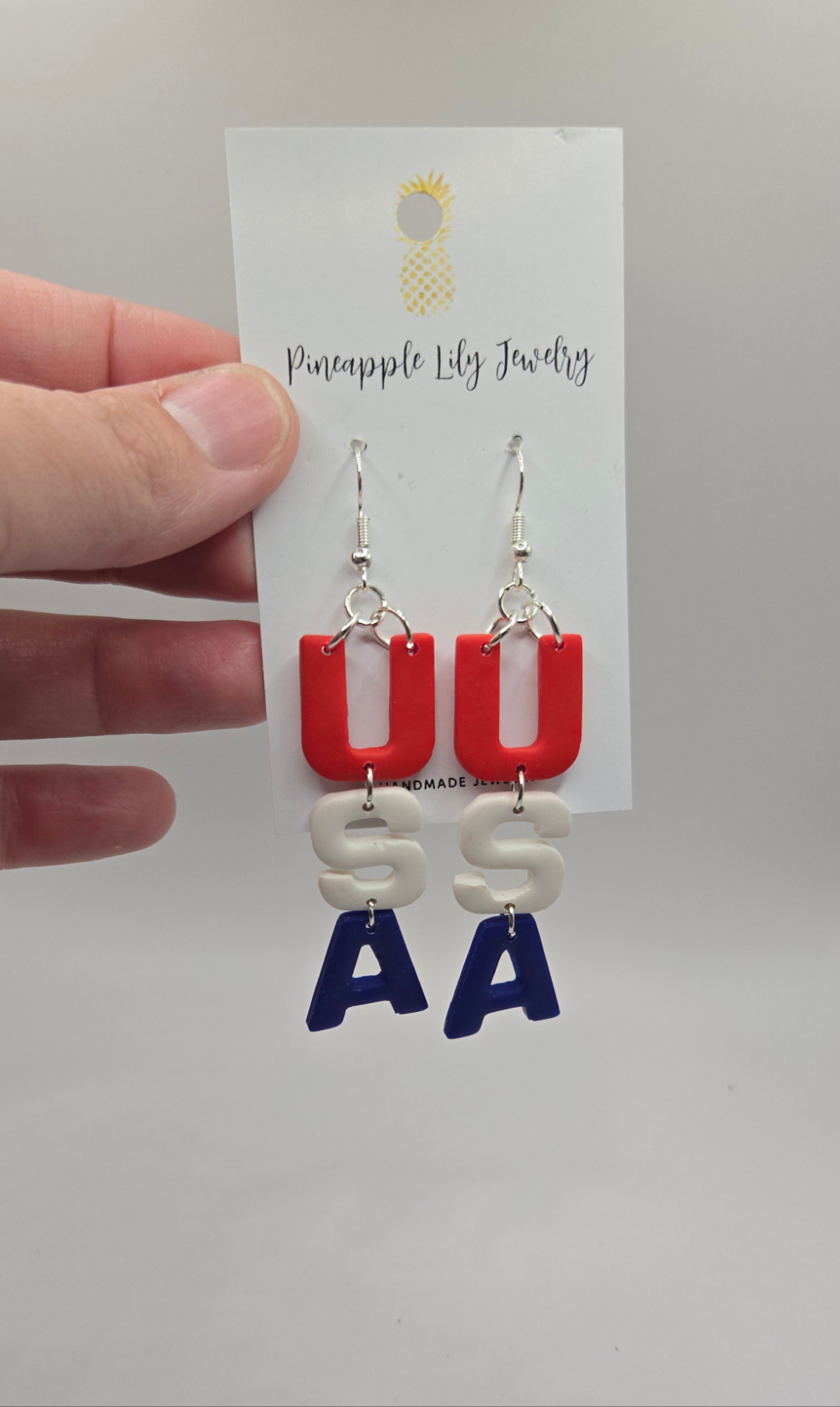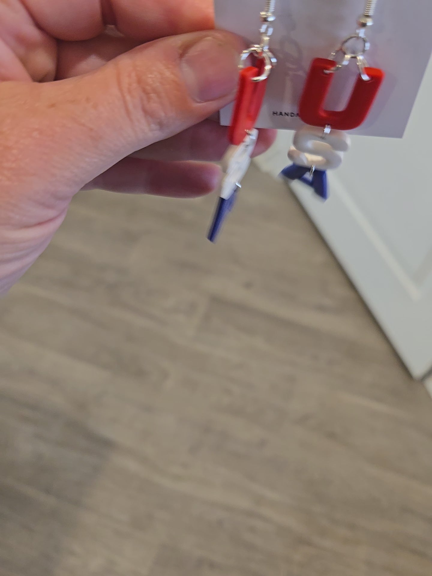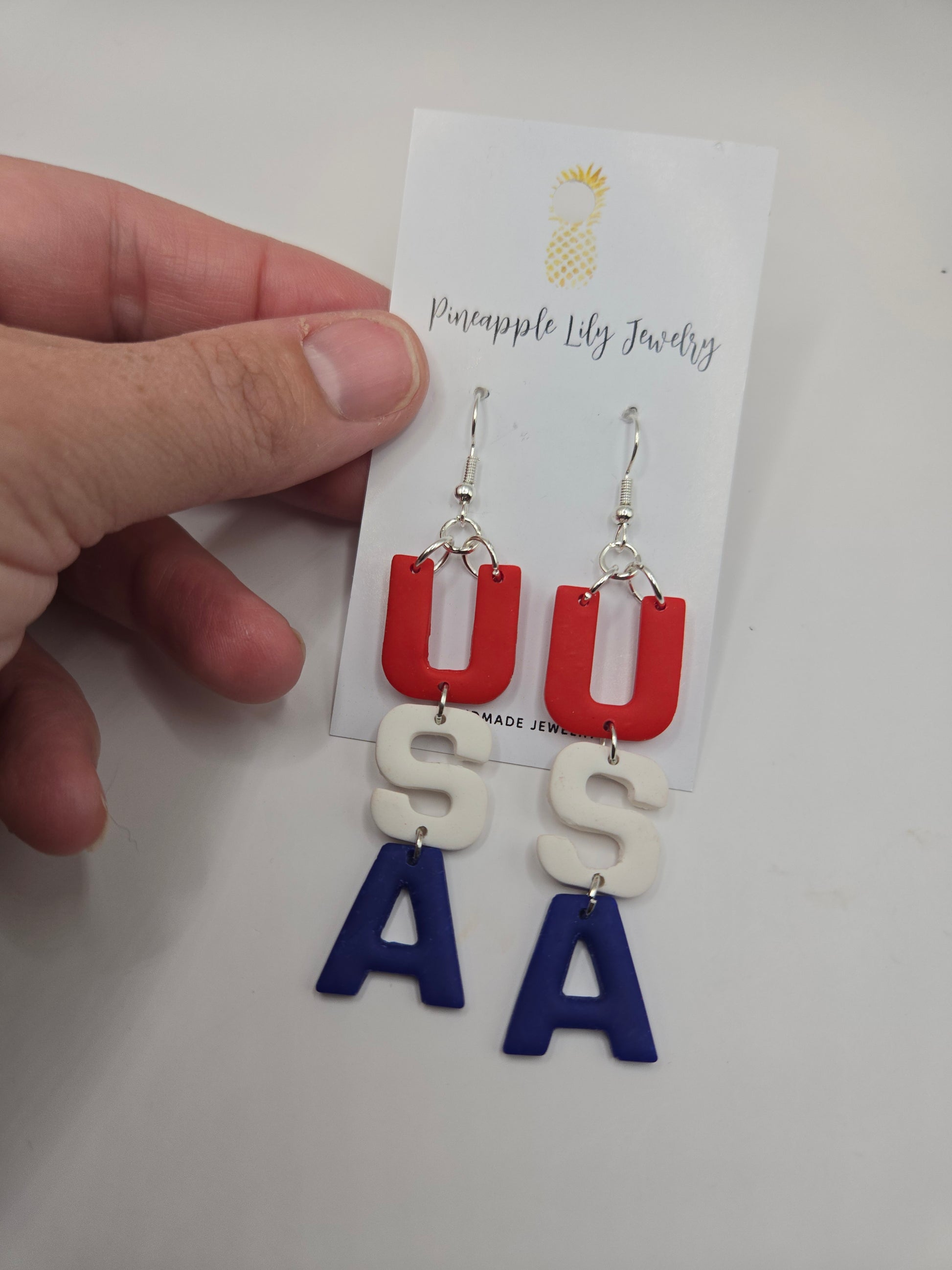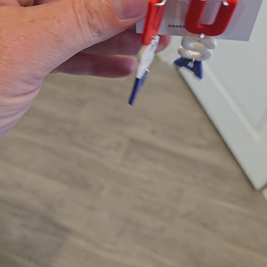 These long USA dangles are lightweight and perfect for all proud to be an American theme. Memorial day, 4th of July, USA theme at a country concert etc